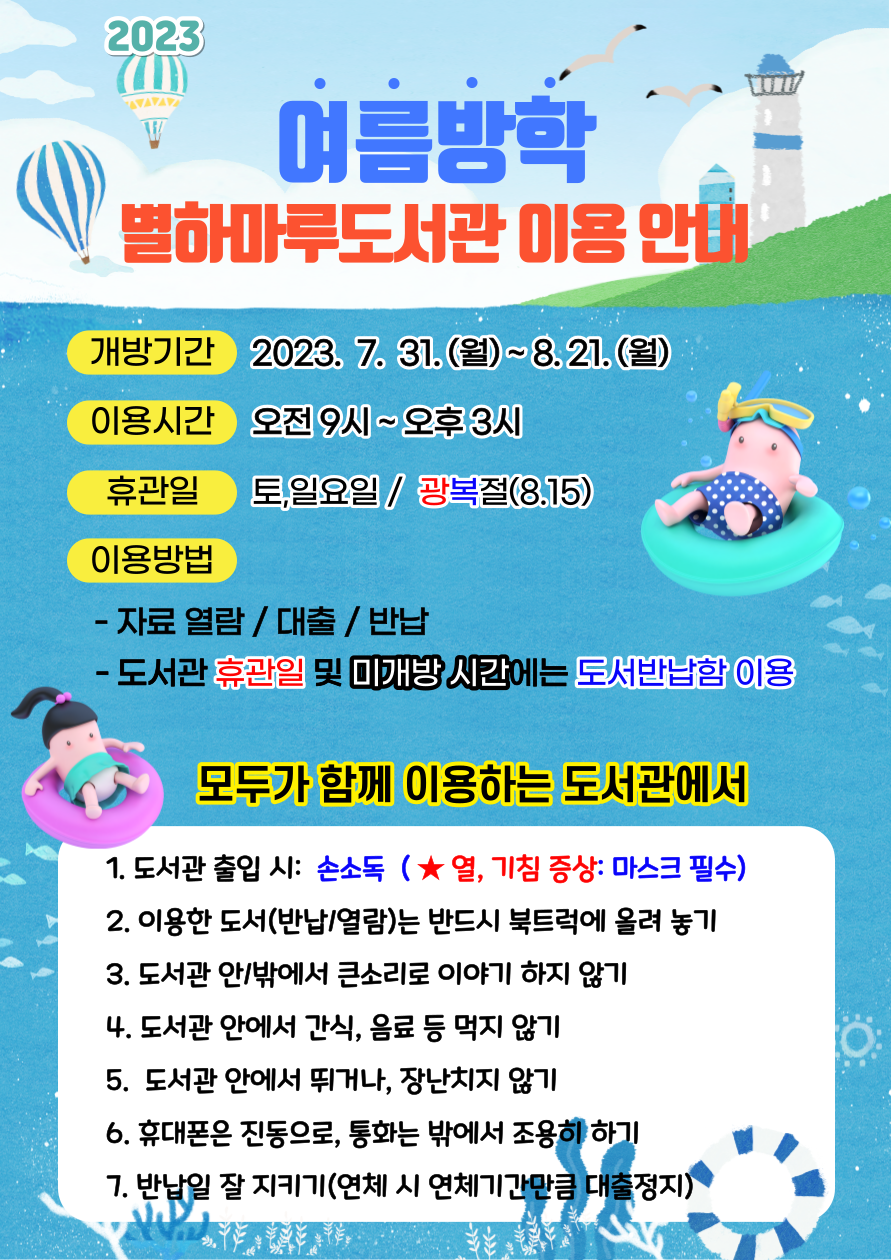2023. 여름방학 별하마루도서관 이용 안내