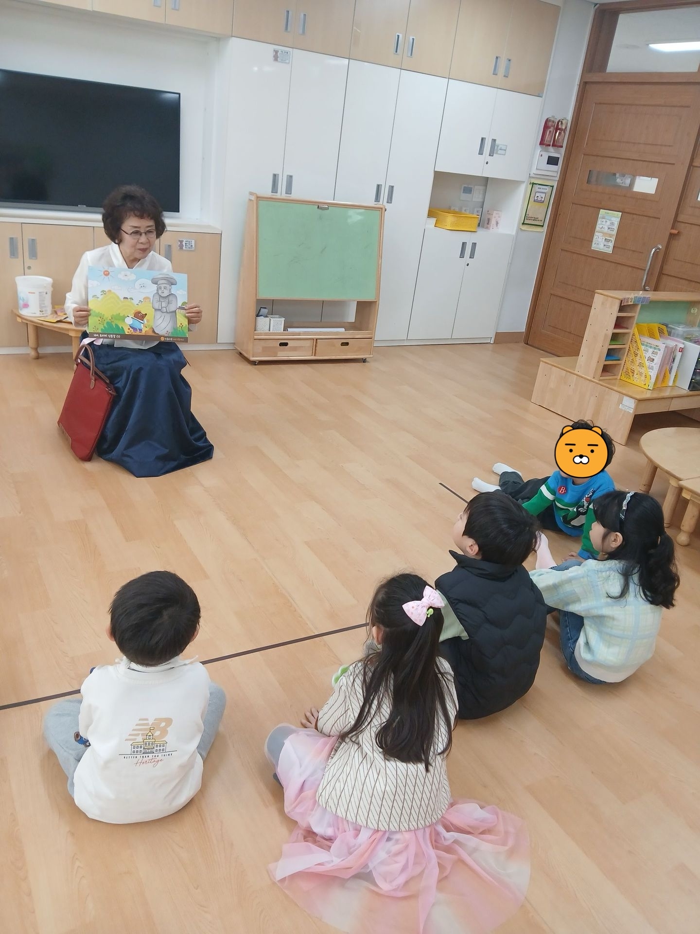 손주를 무릎에 앉히고 '옛날 옛적에'를 속삭이던 살가운 분위기를 이어 우리 유치원에서도 매주 화요일에 이야기할머니와 함께 활동합니다. 첫 수업 이야기는 <두더지 신붓감> 이었습니다.