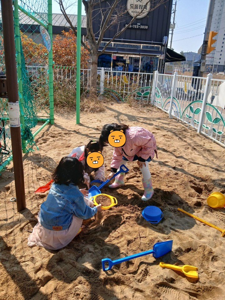 드디어 오늘 날씨가 제법 따뜻해져서 첫 모래놀이를 시작해보았답니다. ^^
