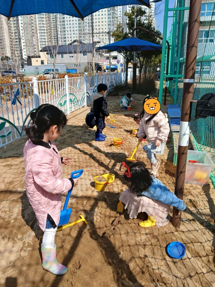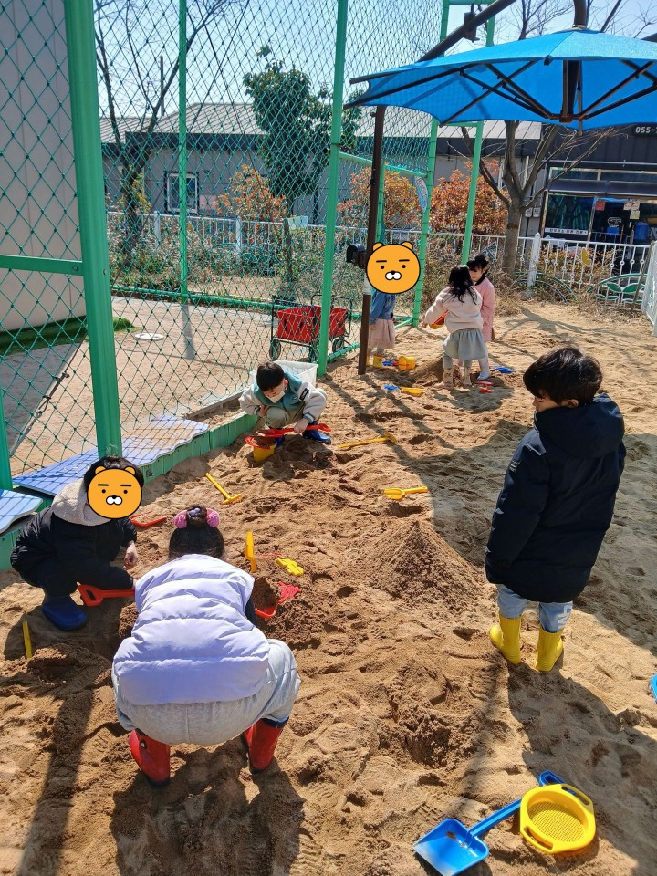 사랑반 친구들이 많이 기다렸던 놀이! 그것은 바로 모래놀이랍니다. ^^
