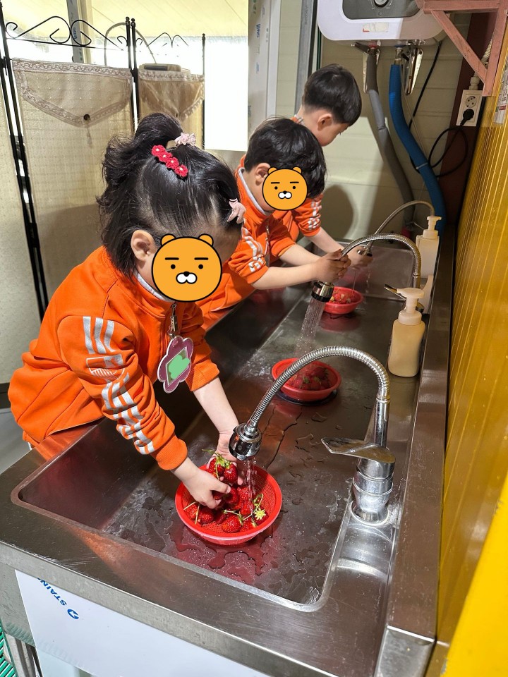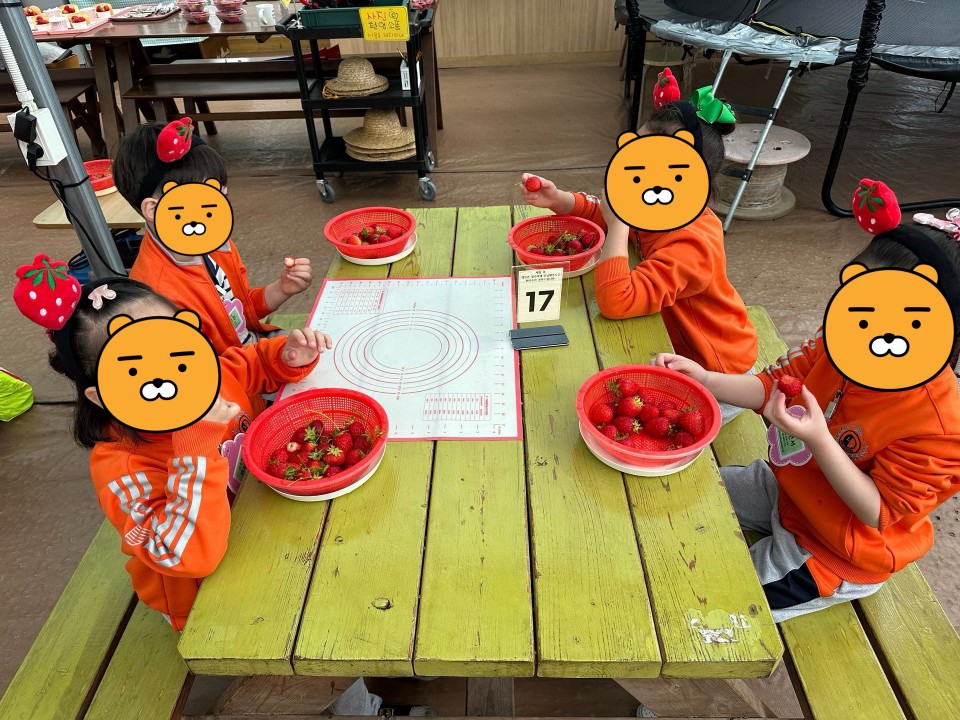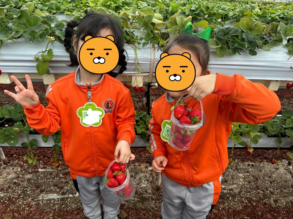 오늘 첫 현장체험학습을 다녀왔습니다. 제철과일인 딸기를 딸기밭에서 직접 따서 씻은 후 바로 입으로 쏙~!! 사먹는 딸기보다 싱싱해서 너무너무 맛나다는 사랑반 아이들의 반응^^ 먹고 싶은만큼 먹어도 남았어요. 딸기케이크도 만들어보고 가족과도 함께 먹을 딸기도 챙겼답니다.