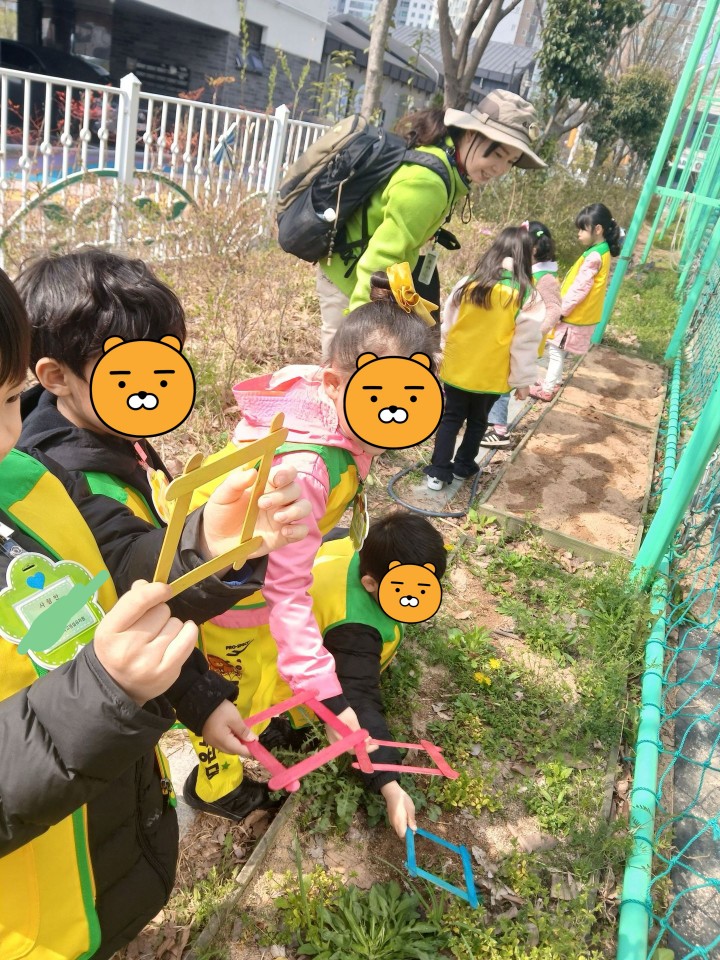 *숲활동 선생님과 함께 교내 봄 숲을 산책하며 어떤 봄을 보았는지 경험을 나누어보았어요. 프레임을 들고 내가 담고 싶은 봄을 여러장 담아서 하나, 둘, 셋, 찰칵! 사진도 찍고 다양한 봄꽃으로 놀이(봄꽃 반지 만들기, 봄꽃 장식하기 등)도 해 보았답니다. ^^