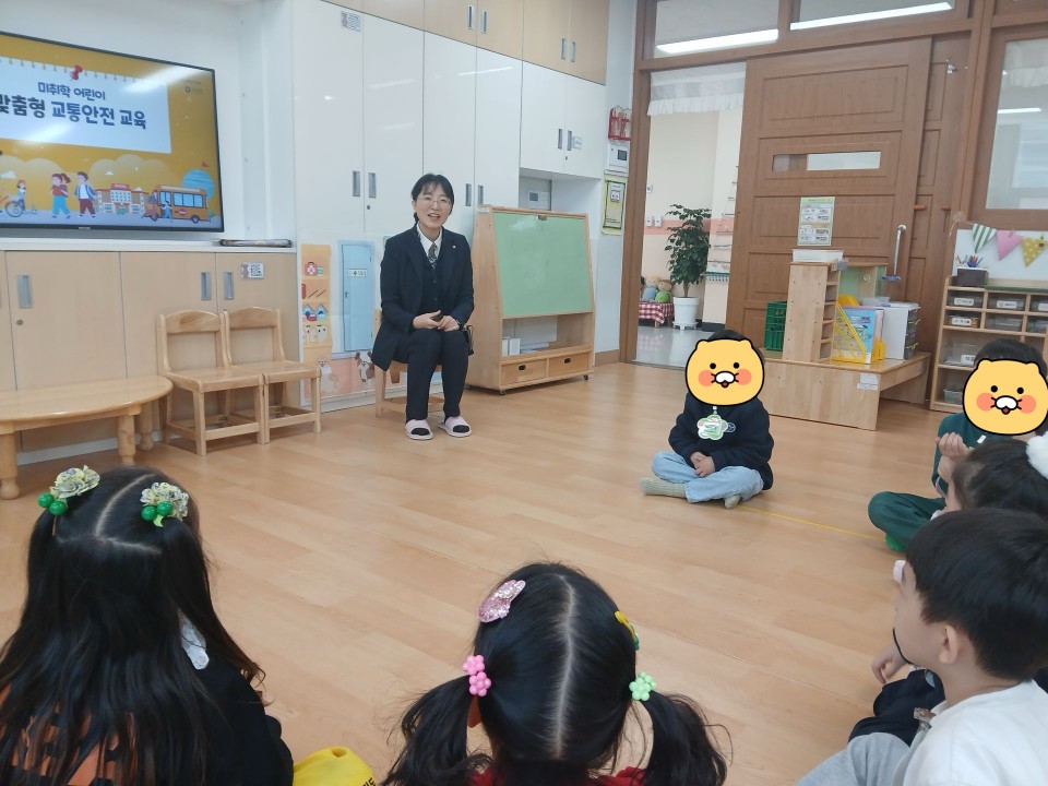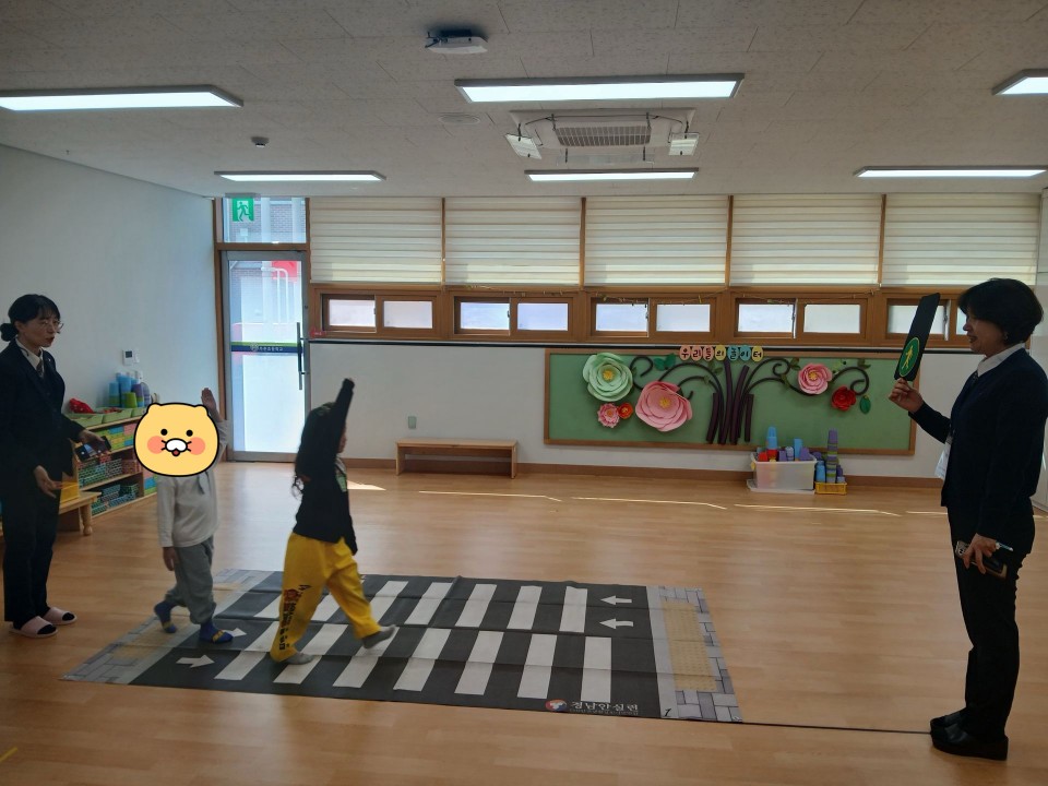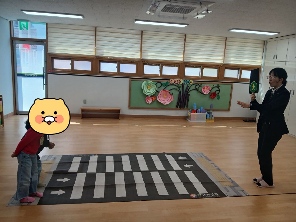 횡단보도에서 안전하게 대기하는 방법, 길을 건너는 방법, 차를 탔을 때 안전벨트를 왜 해야 하는지, 신호등이 있는 횡단보도를 건너는 방법 등을 알아보는 중요한 시간을 가졌답니다. ^^