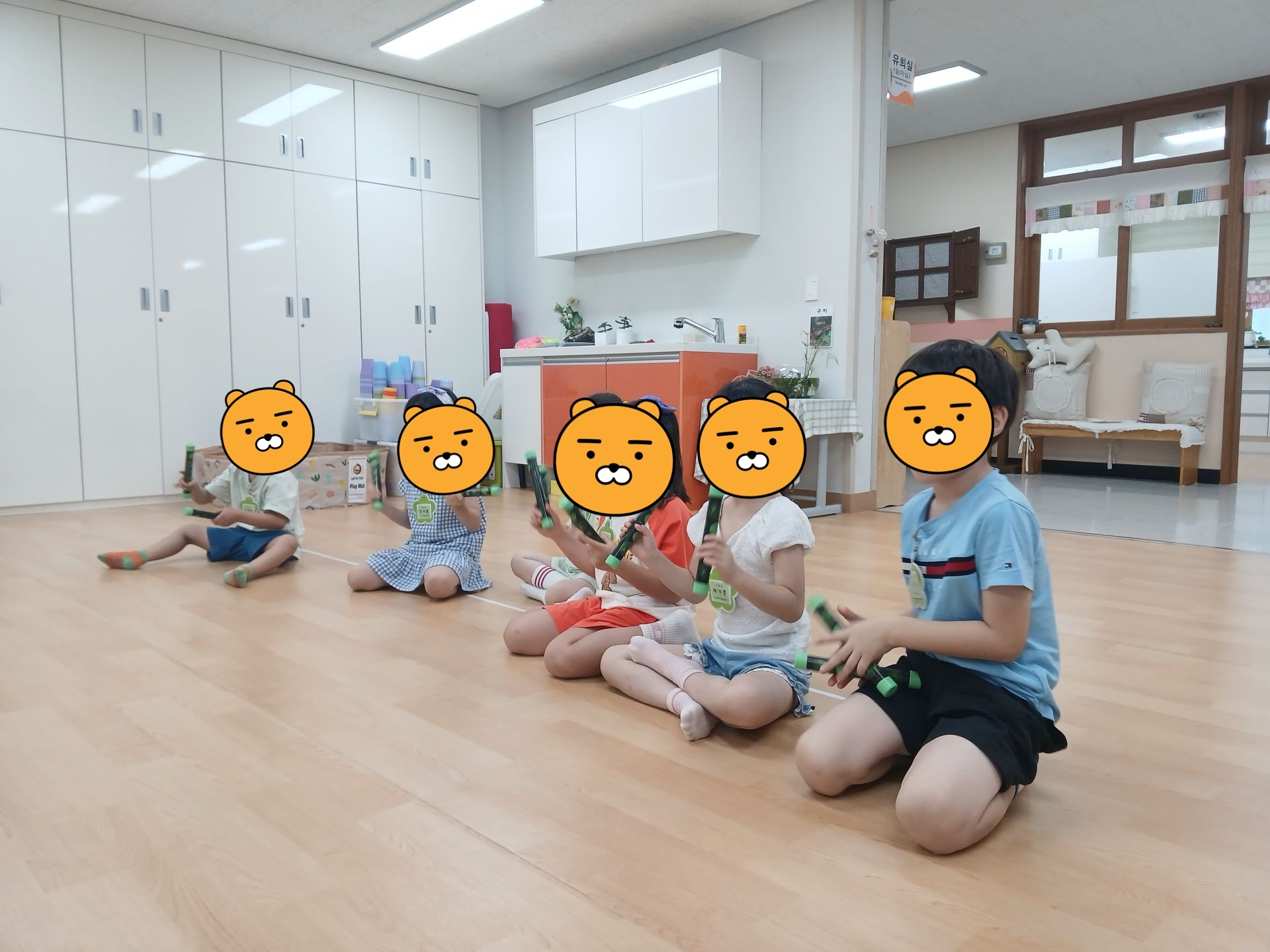 * "개구리 스틱" 악기를 이용하여 음악에 맞춰 연주해보았어요.