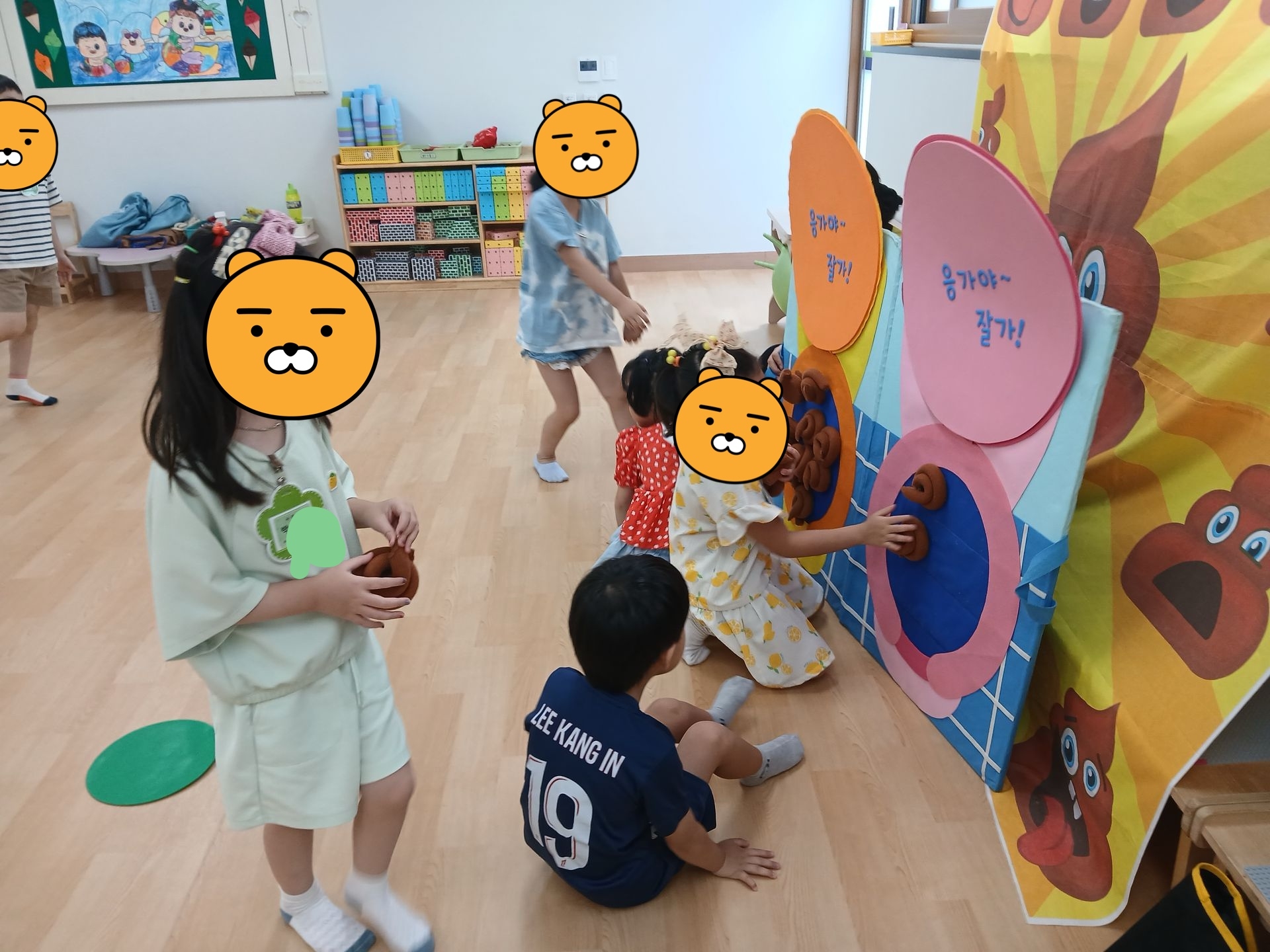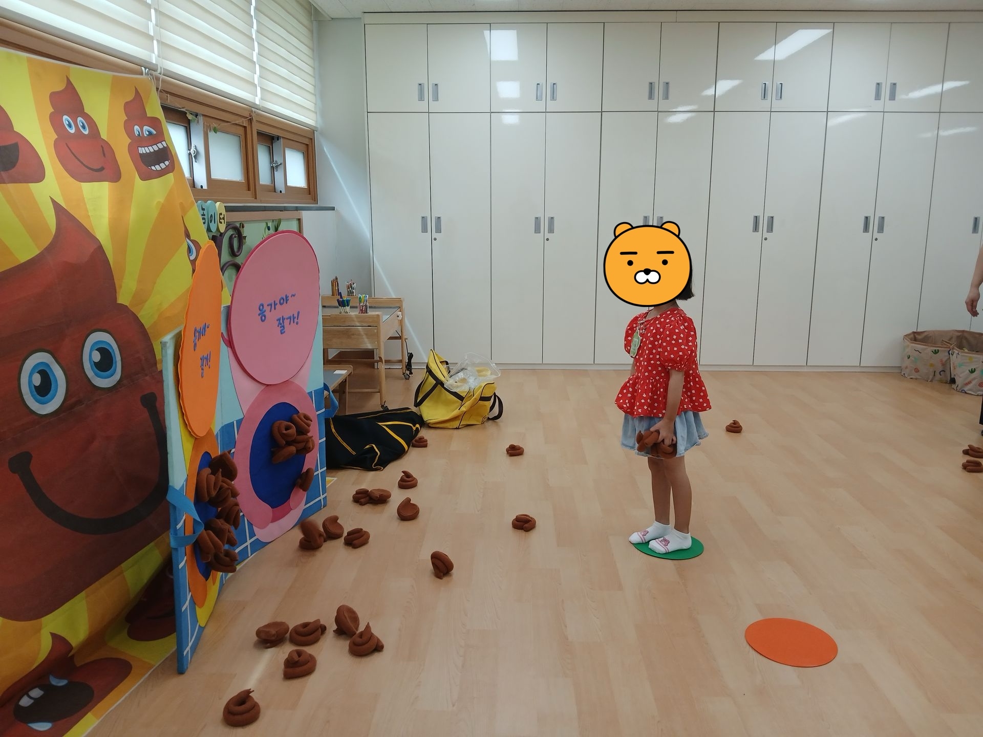 변기 판넬에 똥(?)을 던져 붙여보면서 올바른 변기 사용법도 알아보았답니다. ^^